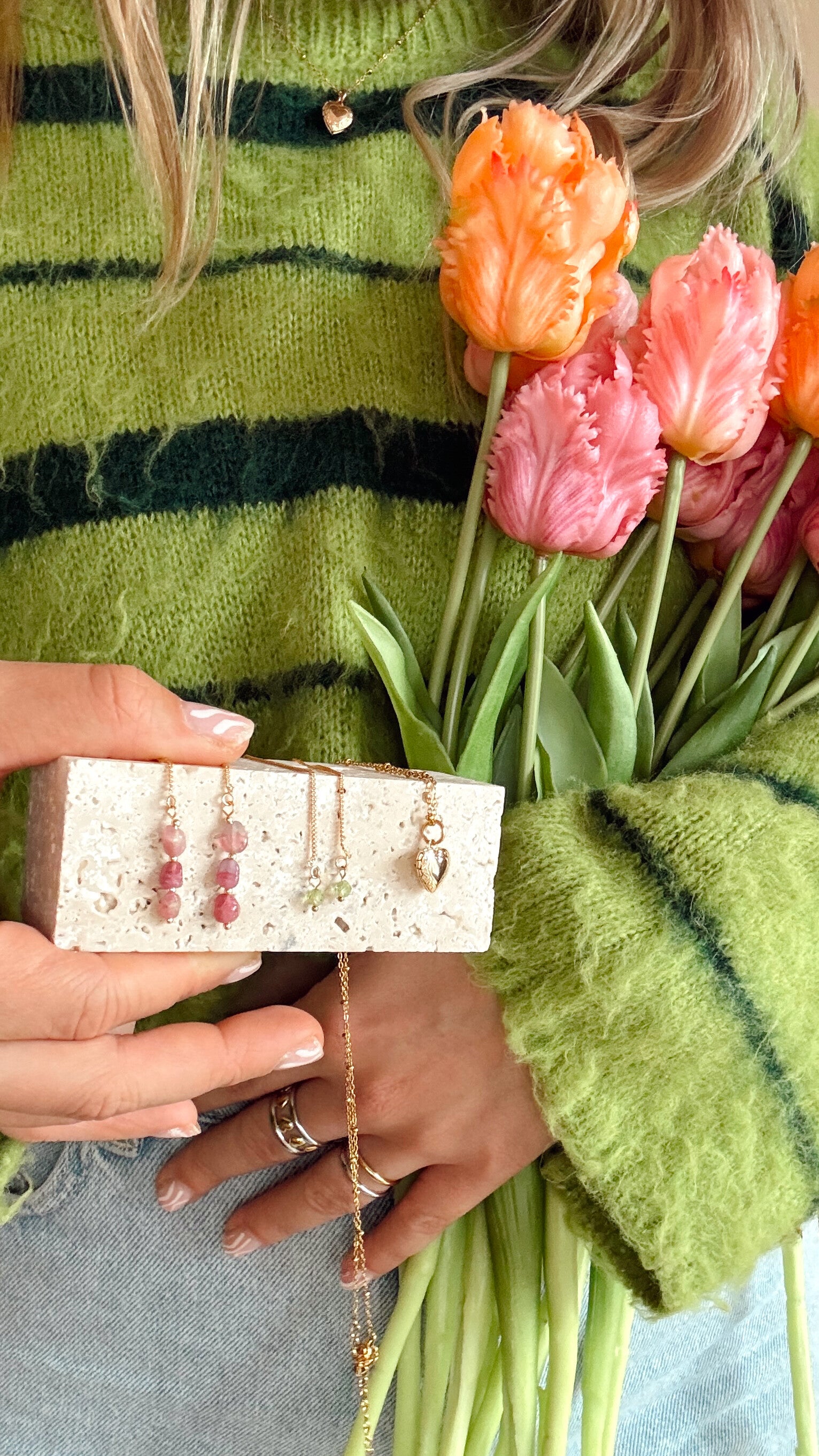 Mijn naam is Roos en sinds 2018 maak ik met veel liefde mijn eigen sieraden. Elk item is met de hand gemaakt en daardoor stuk voor stuk uniek! Wat begon met een enkelbandje is uitgegroeid tot een breed assortiment dat continue veranderd!